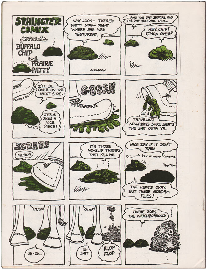 Almost a year after putting out Sludge, Sheldon Adams Bickford and Osborne Enterprises published Hawgfat Funnies, which features many of the same characters from this book and is a slightly more polished production (but no less outrageous). According to Kennedy, both books are believed to have print runs of about 500 copies.